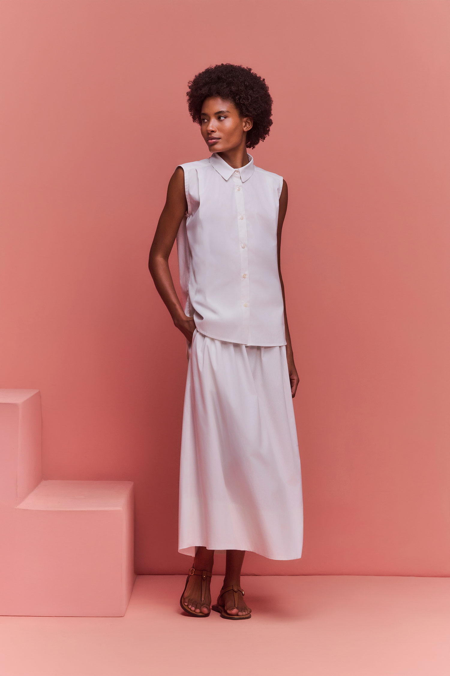 Saia longa modelo evasê em tricoline.
