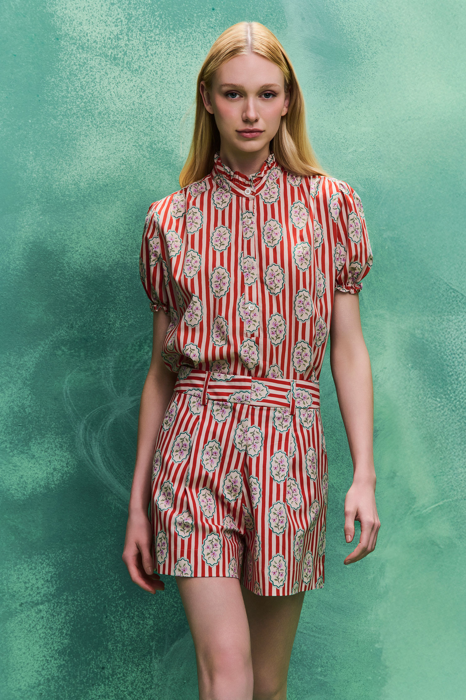 Short de alfaiataria em algodão com elastano e estampa exclusiva.